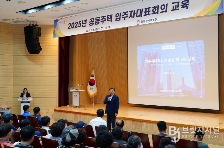 브릿지저널 윤나영 기자 | 울산 동구는 9월 5일 오후 2시 동구청 5층 중강당에서 의무 관리 대상 공동주택 단지의 입주자대표회의 구성원과 관리사무소장 등 관계자 140여 명이 참석한 가운데 공동주택 입주자대표회의 교육을 했다.