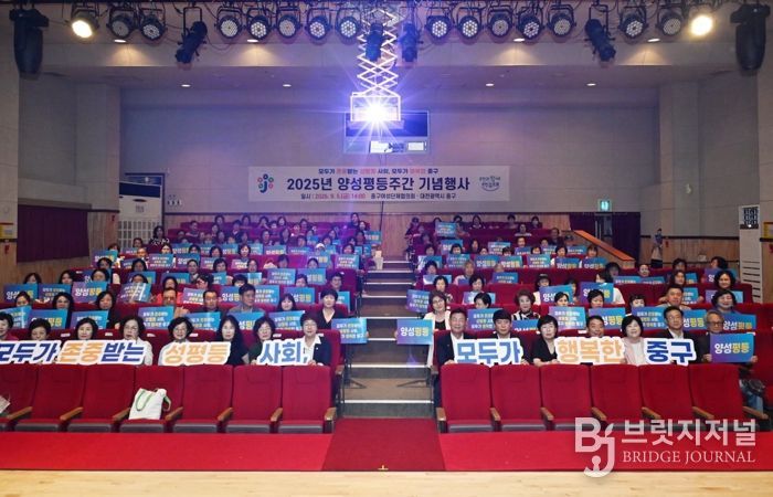 브릿지저널 정보영 기자 | 대전 중구는 지난 5일 양성평등주간을 맞아 대전중구문화원 뿌리홀에서‘2025년 양성평등주간 기념행사’를 개최했다고 밝혔다.
