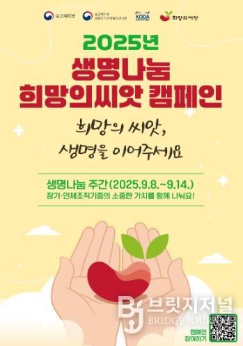 브릿지저널 김진석 기자 | 대구 남구는 9월 8일부터 14일까지 생명나눔 주간을 맞아 장기·인체조직 기증의 소중한 가치를 알리고, 생명나눔 문화 확산을 위한 온라인 '생명나눔 희망의 씨앗 캠페인'을 추진한다.