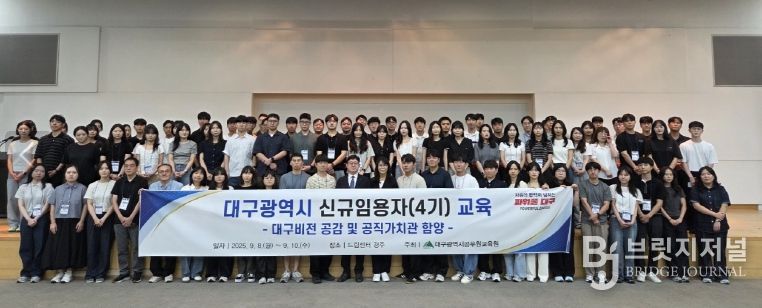 브릿지저널 김진석 기자 | 대구광역시 공무원교육원은 공직사회에 첫발을 내딛는 신규 공무원들의 사명감과 전문성을 높이기 위해 9월 8일부터 9월 26일까지 3주간 ‘신규임용자(4기)’ 교육을 실시한다.