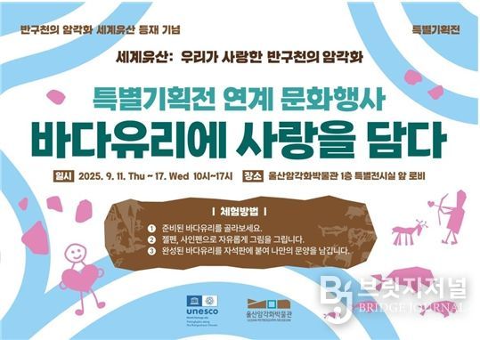 브릿지저널 윤나영 기자 | 울산암각화박물관은 세계유산의 보존과 활용을 주제로 한 ‘바다유리에 사랑을 담다’ 행사를 개최한다고 밝혔다.