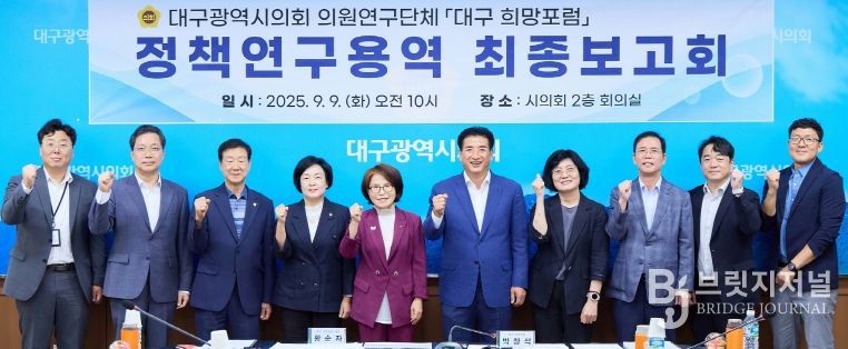 한편, ‘대구 희망포럼’은 미래세대를 위한 지역 정책 발굴과 제도 개선 방안을 모색하고자 작년 8월 결성된 연구단체로, 황순자 의원(대표), 이성오 의원(간사)을 비롯해 김대현, 박창석, 윤권근, 이재숙, 임인환, 정일균, 조경구 의원 등 9명이 활동하고 있다.