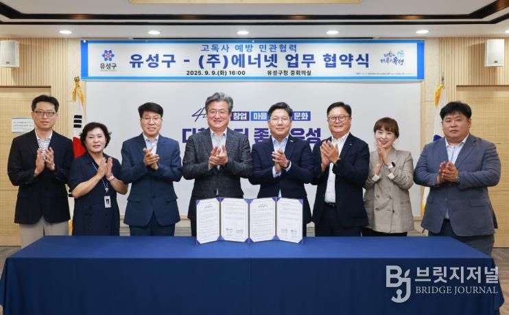 브릿지저널 정보영 기자 | 대전 유성구는 지난 9일 도시가스 고객서비스 제공 기관인 ㈜에너넷과 ‘고독사 위험군 발굴 및 지원을 위한 민관 협력 업무 협약’을 체결했다.