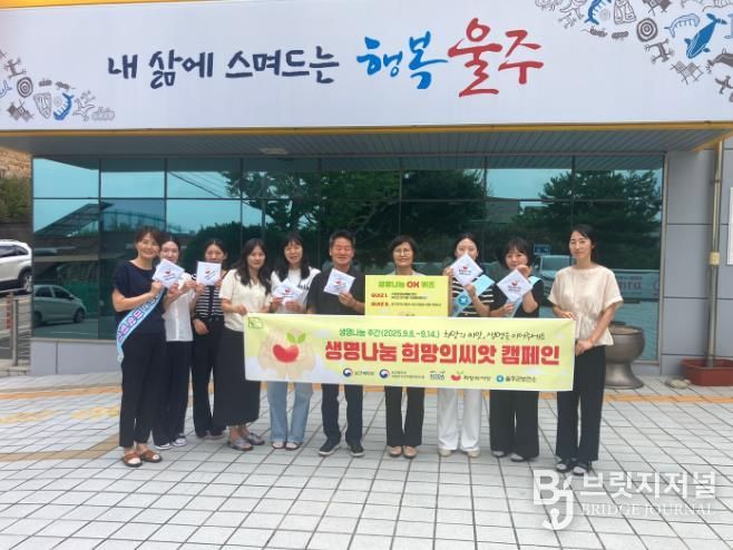 브릿지저널 윤나영 기자 | 울산 울주군이 제8회 생명나눔 주간(9월 8~14일)을 맞아 한국장기조직기증원 합동 생명나눔 희망의씨앗 캠페인에 동참했다고 11일 밝혔다.
