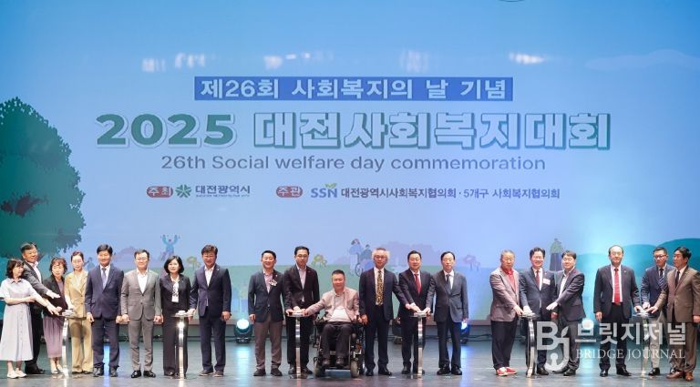 브릿지저널 정보영 기자 | 대전광역시사회복지협의회(회장 김현채)는 9월 11일 오후 평송청소년문화센터에서 '2025 대전사회복지대회'를 개최했다. 이번 행사는 제26회 사회복지의 날을 기념해 사회복지 유관기관과 단체 관계자, 시민 등 500여 명이 참석한 가운데 진행됐다. 이날 행사에는 이장우 대전시장을 비롯해 시의회, 교육청 등 주요 인사들이 함께해 지역 복지인들의 노고를 격려했다.
