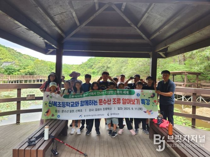브릿지저널 윤나영 기자 | 울산 남구 철새홍보관은 11일 문수산과 신복초등학교 교내에서 초등학생 20명을 대상으로 ‘문수산 조류 알아보기 특강’을 운영했다.
