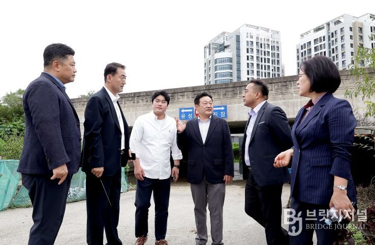 먼저 외삼~유성복합터미널 BRT 연결도로 건설현장을 찾은 위원들은 총사업비 1,685억 원이 투입되는 해당 사업의 진행 상황을 청취하고, 현장을 둘러보며 시민 불편 최소화와 철저한 안전 관리를 당부했다. 특히 올해 10월 반석역·장대교차로 구간 임시 개통과 2030년 전면 개통에 차질이 없도록 교통대책 마련과 함께 세심한 공정 관리를 강조했다.