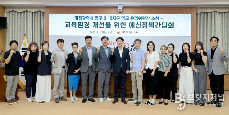 브릿지저널 정보영 기자 | 대전시의회 교육위원회는 12일 시의회 3층 소통실에서 동구 3·5지구 학교 운영위원장 초청 교육환경 개선을 위한 예산정책간담회를 개최했다. 이번 간담회는 이상래 의원(국민의힘, 동구2)이 주재해 지역 교육현장의 주요 요구를 청취하고, 2026년도 예산 편성 과정에 반영하기 위해 마련됐다.