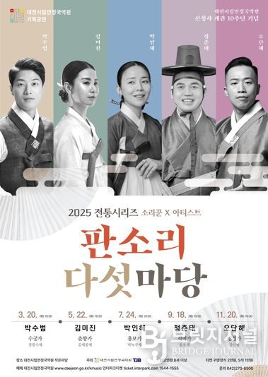 브릿지저널 정보영 기자 | 대전시립연정국악원은 TJB대전방송과 공동 주최로 진행하는 전통시리즈 ‘소리꾼X아티스트 '판소리 다섯 마당'’의 네 번째 무대를 오는 9월 18일 오후 7시 30분, 국악원 작은마당에서 선보인다.