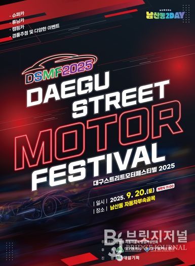 브릿지저널 김진석 기자 | 대구 중구는 오는 9월 20일 오전 10시부터 오후 6시까지 남산동 자동차부속골목 일원에서 2025 대구스트리트모터페스티벌을 개최한다.