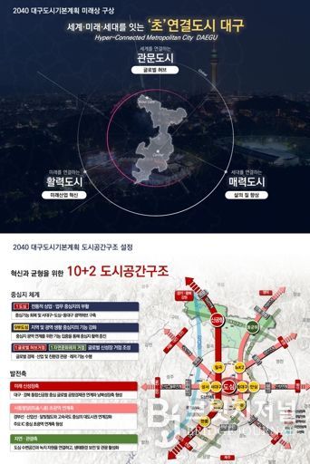 2040년 대구의 미래상은 ‘세계·미래·세대를 잇는 초연결도시 대구’로 제시하고, 미래상을 실현하기 위해 3대 목표를 △세계를 연결하는 관문도시 △미래를 연결하는 활력도시 △세대를 연결하는 매력도시로 설정했다.