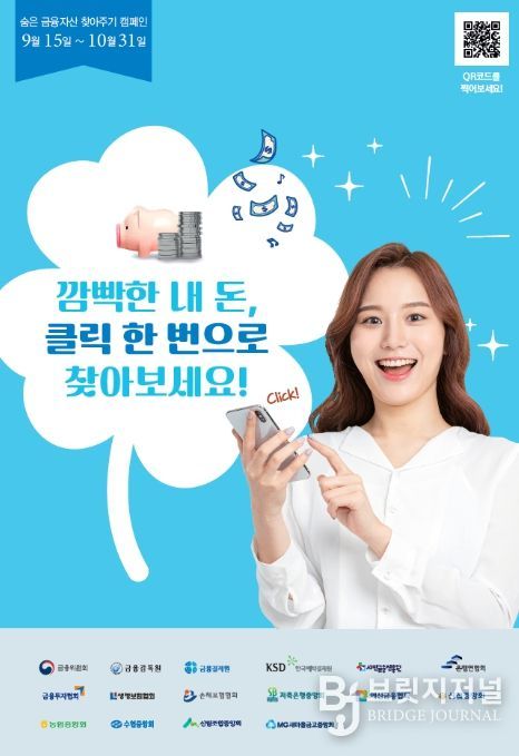 브릿지저널 정보영 기자 | 금융위원회와 금융감독원은 금융소비자가 ‘숨은 금융자산’을 보다 간편하게 조회하고 찾아갈 수 있도록 9월 15일부터 10월 31일까지 7주간 全 금융권과 함께 '숨은 금융자산 찾아주기 캠페인'을 실시한다.