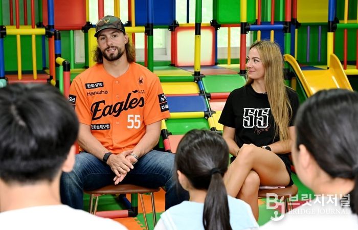 브릿지저널 정보영 기자 | 대전 중구는 지난 14일 한화이글스 ‘라이언 와이스’선수 부부가 아동양육시설인 ‘늘사랑아동센터’에 방문해 입소아동들과 특별한 시간을 함께했다고 밝혔다.