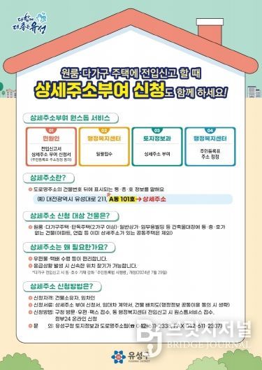 브릿지저널 정보영 기자 | 대전 유성구는 전세사기 예방과 복지사각지대 해소 등을 위해 ‘상세주소 직권 부여’ 사업을 추진한다고 16일 밝혔다.