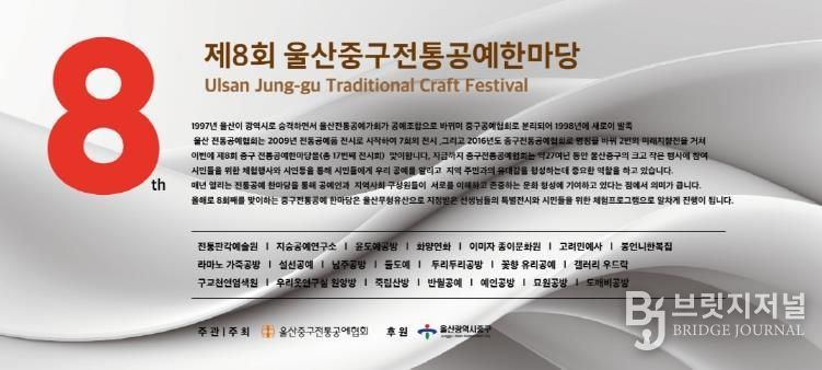 브릿지저널 윤나영 기자 | ‘제8회 울산중구전통공예한마당’이 9월 16일부터 9월 19일까지 나흘 동안 울산 중구문화의전당 별빛마루에서 열린다.