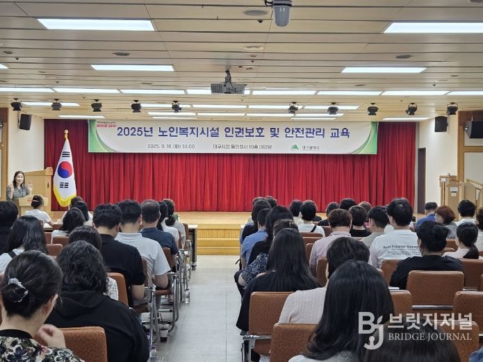 브릿지저널 김진석 기자 | 대구광역시는 9월 16일(화) 오후 2시, 시청 동인청사 10층 대강당에서 ‘2025년 노인복지시설 종사자 인권보호 및 안전관리 교육’을 성황리에 개최했다.