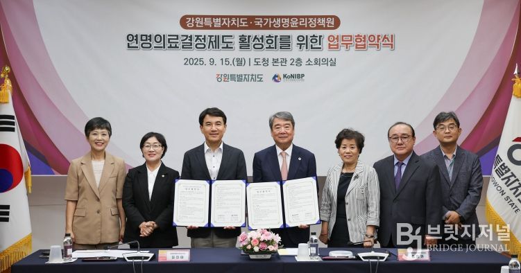 또한 “이번 협약은 강원특별자치도와 국가생명윤리정책원이 협력하여 제도의 인식 개선과 운영 기반을 강화하는 의미 있는 계기”라며, “도의회 차원에서도 지속적인 지원과 관심을 아끼지 않겠다”고 밝혔다.