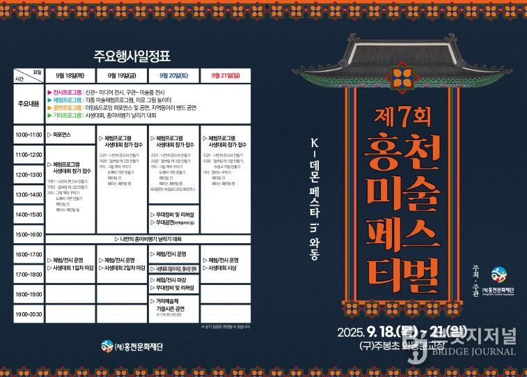 브릿지저널 윤나영 기자 | 홍천군과 홍천문화재단은 오는 9월 18일부터 21일까지 홍천미술관 와동분관에서(구 와동분교) 케이 데몬을 재해석한 문화예술 행사 및 제7회 홍천미술페스티벌을 개최한다.