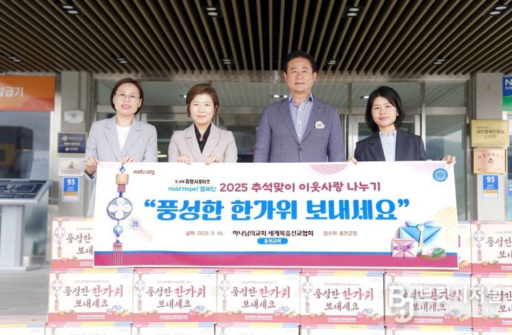 브릿지저널 윤나영 기자 | 하나님의교회세계복음선교협회(총회장 김주철)는 추석 명절을 맞아 9월 16일 홍천군청에 방문하여 2025 추석맞이 이웃사랑 나누기 식료품 20세트(총 80~100만 원 상당)를 전달했다.