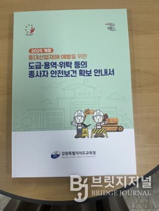 브릿지저널 윤나영 기자 | 강원특별자치도교육청은 교육 현장 내 중대산업재해 예방과 안전보건 관리 수준 제고를 위해 ‘도급·용역·위탁 등의 종사자 안전보건 확보 안내서’ 개정판을 제작하여 도내 698개 교육행정기관 및 공립학교에 배포한다고 17일 밝혔다.