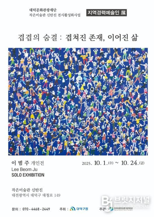 브릿지저널 정보영 기자 | 대덕문화관광재단은 대청호 인근 ‘작은미술관 신탄진’ 에서 하반기 기획전시로 지역경력예술인전(展) ‘제49회 청림전’과 이범주 개인전 ‘겹겹의 숨결: 겹쳐진 존재, 이어진 삶’을 개최한다고 밝혔다.