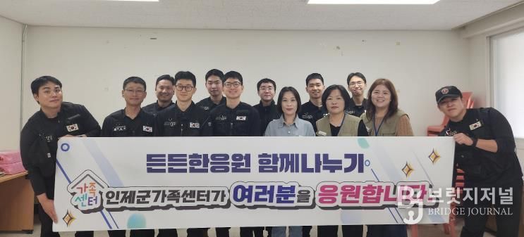 인제군가족센터 관계자는 “유해발굴 임무에 최선을 다하는 장병들에게 작은 격려가 되길 바란다”며, “앞으로도 군 장병뿐 아니라 지역사회의 안전과 치안을 위해 애쓰는 분들과 함께하는 나눔을 이어가겠다”고 밝혔다.
