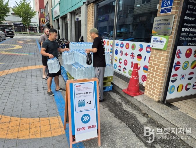 브릿지저널 윤나영 기자 | 강릉시는 관할 읍면동에서 배부하고 있는 생수를 받지 못했거나 등록이 안 되어있는 외국인근로자 400명을 대상으로 지난 17일부터 18일까지 외국인근로자 지원센터에서 생수 10톤(생수(2L) 4,800병)을 배부했다.