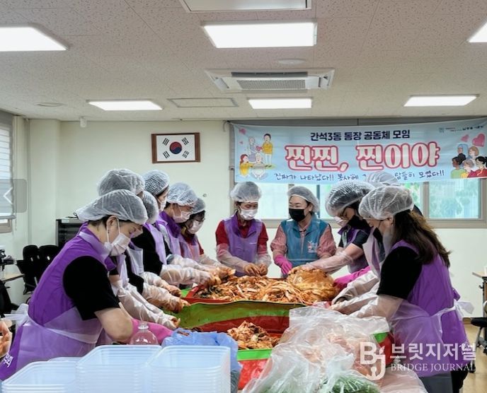 브릿지저널 김경미 기자 | 인천시 남동구 간석3동 행정복지센터는 통장자율회 공동체 모임 ‘찐찐, 찐이야’가 추석 명절을 맞아 이웃사랑을 실천하기 위해 김치 담그기 나눔을 했다고 19일 전했다.