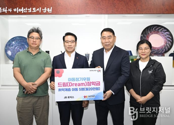 브릿지저널 윤나영 기자 | 남원시와 ㈜제이디로지스(대표 이상욱), (사)위드인사람과함께(대표 김대호)는 지난 19일 남원시장실에서 최경식 남원시장과 관계자들이 참석한 가운데 취약계층 아동·청소년 지원을 위한 ‘드림 장학금’ 전달식을 가졌다.