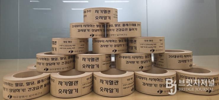 남구보건소는 관내 우체국에 ‘자기혈관 숫자알기’ 표식과 혈압, 혈당, 콜레스테롤 등 주요 건강 수치가 새겨진 친환경 종이 포장 테이프를 제작·배포했다.