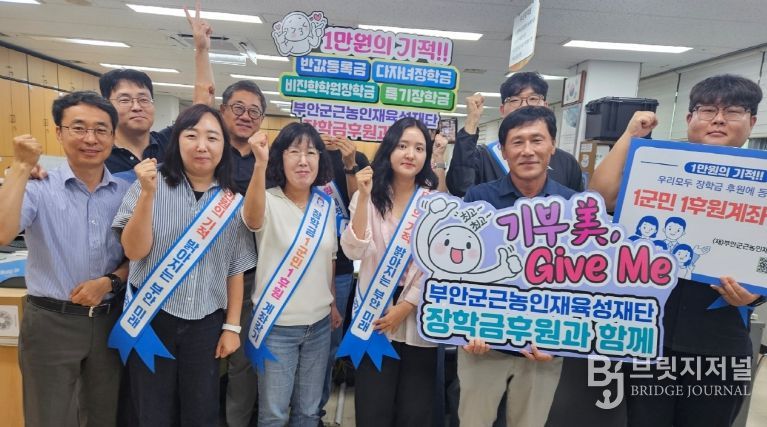 한편, (재)부안군근농인재육성재단은 연 2,200여명의 지역 청년들에게 약 20억원의 장학금 혜택을 지원하고 있으며, 지난 7월부터 장학기금 범군민 후원 독려 운동으로 “군민과 함께하는 1만원의 기적,『장학금 1군민 1후원계좌 갖기』” 캠페인을 추진하고 있다.