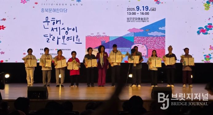 브릿지저널 김경미 기자 | 충북 괴산군은 성인문해교육을 받고 있는 괴산두레학교 학습자 9명 전원이 ‘2025 전국 및 충청북도 문해교육 시화전’에서 수상의 영예를 안았다고 19일 밝혔다.