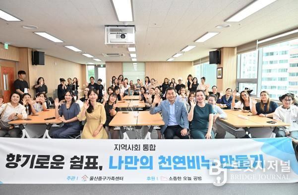브릿지저널 윤나영 기자 | 울산중구가족센터가 9월 19일 오후 2시 울산중구가족센터 다목적실에서 지역 주민 50여 명을 대상으로 ‘향기로운 쉼표, 나만의 천연비누 만들기’ 프로그램을 운영했다.