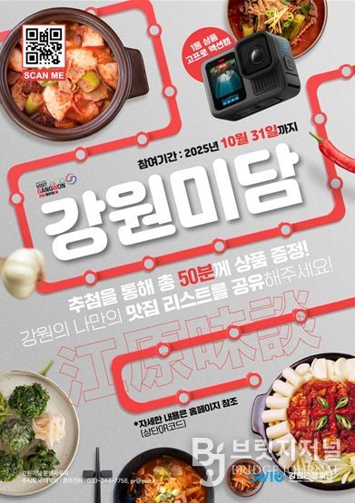 브릿지저널 윤나영 기자 | 강원특별자치도와 강원관광재단은 미식 여행 트렌드의 확산에 맞춰 9월 22일부터 12월까지 3개월간 강원 미식 챌린지를 전용 누리집에서 운영한다고 밝혔다.