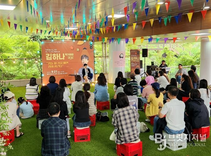 브릿지저널 윤나영 기자 | 울주선바위도서관이 9월 독서의 달을 기념해 21일 야외잔디마당에서 카피라이터 ‘김하나 작가’ 초청 특별강연을 개최했다.