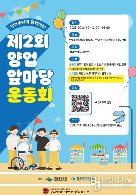 브릿지저널 윤나영 기자 | 양업토마스장애인종합복지관은 오는 24일 오후 1시부터 4시까지 복지관 앞마당에서 지역 주민과 함께하는 제2회 양업 앞마당 운동회를 개최한다.