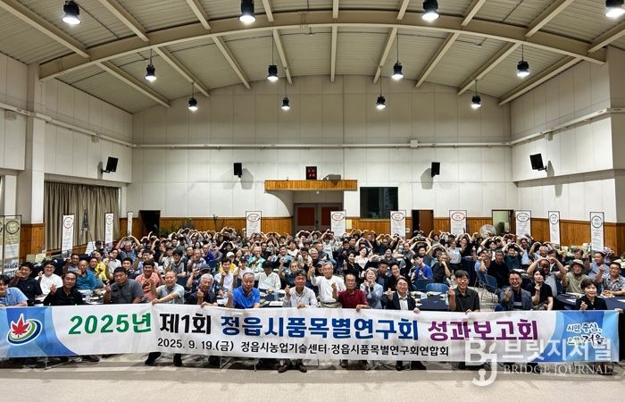 브릿지저널 윤나영 기자 | 정읍시농업기술센터가 지난 19일 제2청사에서 130여 명이 참석한 가운데 ‘2025년 제1회 품목별연구회 성과보고회’를 열고 연중 활동 성과를 공유했다.