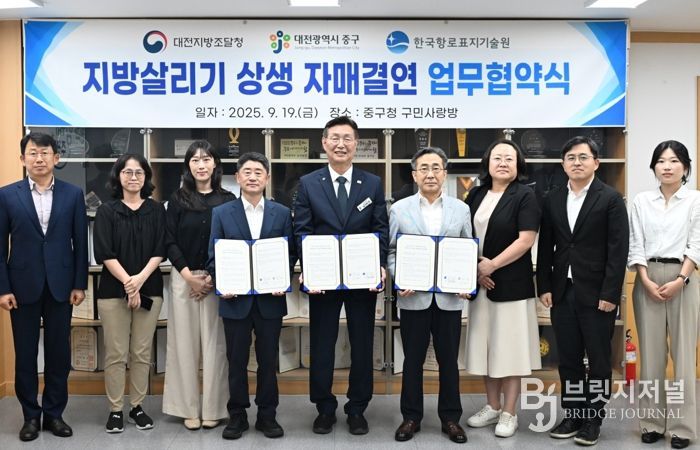 브릿지저널 정보영 기자 | 대전 중구는 지난 19일 대전지방조달청, 한국항로표지기술원과 지방살리기 상생 자매결연 업무협약을 체결했다고 밝혔다.