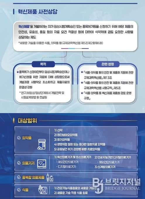 식약처는 “현장상담 외에도 신기술 또는 신개념 의료제품을 개발 중인 기업과 개발자는 혁신제품 사전상담 제도를 통해 직접 사전상담을 신청할 수 있다”며, 식약처 누리집 ‘혁신제품 사전상담’ 페이지에 공개한 절차 등을 참고 가능하다고 설명했다.