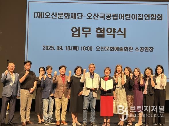브릿지저널 김경미 기자 | 오산문화재단과 오산시국공립어린이집연합회는 지난 9월 18일 오산문화예술회관에서 지역 문화예술 활성화와 어린이 창의력 증진을 위한 업무협약을 체결했다.