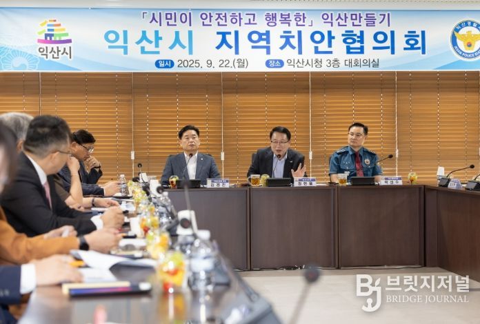 브릿지저널 윤나영 기자 | 익산시는 22일 익산시의회와 익산경찰서를 비롯한 지역 주요 기관·단체장과 언론기관장, 시민단체장이 참석한 가운데 '2025년 하반기 지역치안협의회 정기회의'를 개최했다.