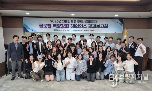 브릿지저널 김경미 기자 | 충북 핵심 인재 양성기관인 (재)충북학사(이사장 김영환)는 '2025년 글로벌 역량강화 해외연수'를 성공적으로 마무리하고, 9월 20일 충북학사 서서울관에서 학사생 및 직원, 관계자 등 50여명이 참석한 가운데 결과보고회를 개최했다.