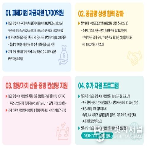 브릿지저널 정보영 기자 | 산업통상자원부 김정관 장관은 9.22(월) KOTRA에서 철강·알루미늄 파생상품 기업 지원 간담회를 주재하고 ‘관세대응 119 (1600-7119)’ 현장을 방문했다. 이번 현장방문은 미 관세조치 애로가 큰 철강·알루미늄 파생상품 기업현장의 목소리를 경청하고 ‘관세대응 119’ 지원체계를 점검하기 위해 마련됐다.