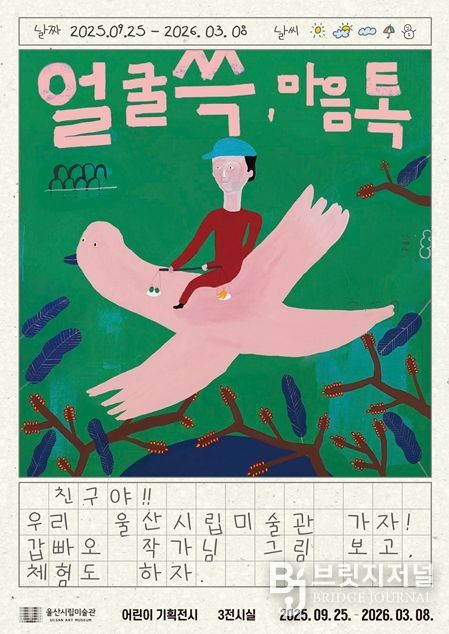 브릿지저널 윤나영 기자 | 울산시립미술관은 오는 9월 25일부터 내년 3월 8일까지 1층 3전시실과 로비에서 어린이전시 ‘얼굴 쓱, 마음 톡’을 연다고 밝혔다.