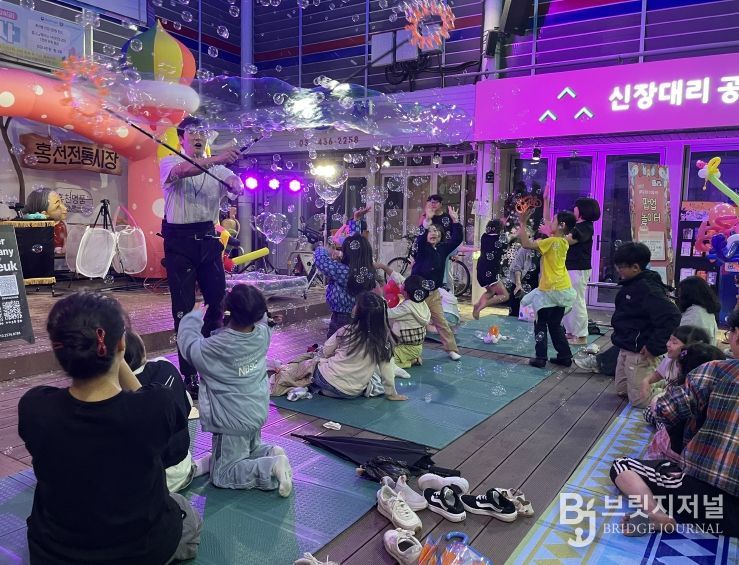 브릿지저널 윤나영 기자 | 홍천군은 9월 19일 오후 6시 30분부터 7시 30분까지, 우천으로 인해 당초 예정된 꽃뫼공원에서 홍천 전통시장 중앙광장으로 장소를 변경하여 ‘팝업 놀이터 버블쇼’를 개최했다.