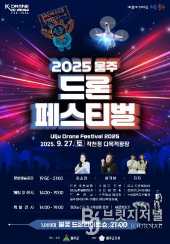브릿지저널 윤나영 기자 | 울산 울주군이 오는 27일 울주군 작천정 다목적광장 일대에서 ‘2025 울주 드론페스티벌’을 개최한다고 23일 밝혔다.