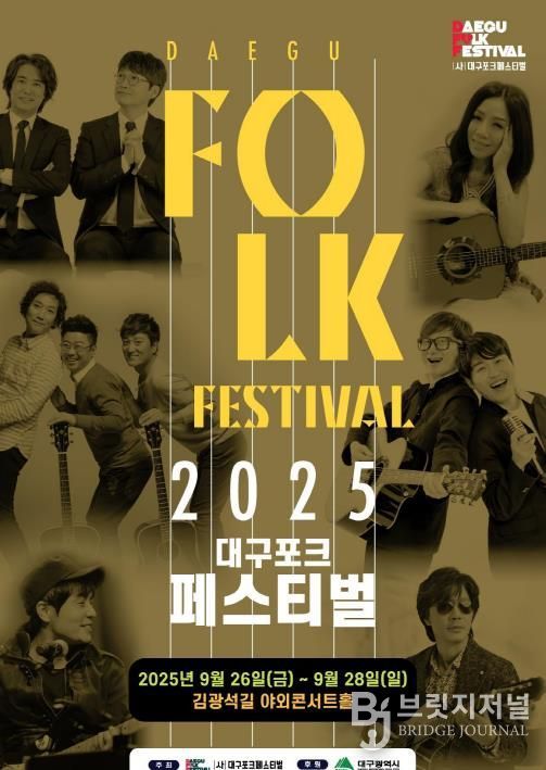 브릿지저널 김진석 기자 | 대구광역시와 (사)대구포크페스티벌은 오는 9월 26일부터 9월 28일까지 3일간, 김광석길 야외콘서트홀 일원에서 ‘2025 대구포크페스티벌’을 개최한다.