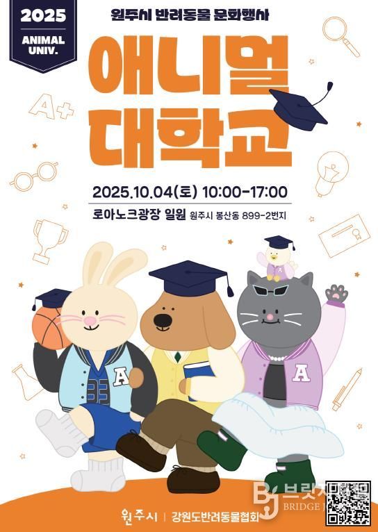 브릿지저널 윤나영 기자 | 원주시농업기술센터는 10월 4일 오전 10시 원주천 로아노크광장에서 반려동물 문화행사 ‘애니멀 대학교’를 개최한다.