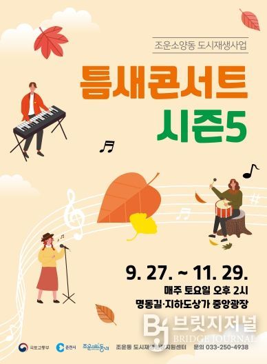 지난 2023년부터 시작해 다섯 번째 시즌을 맞이한 ‘틈새콘서트’는 조운·소양동 도시재생사업의 일환으로 원도심의 거리와 광장을 무대로 시민과 예술가가 함께 호흡하는 대표 프로그램으로 자리 잡았다.