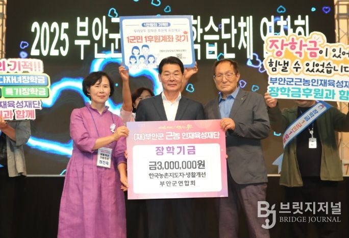 권익현 부안군근농인재육성재단 이사장은 “부안군 농업인 학습단체가 평소에도 다양한 봉사와 교육·실천 활동을 통해 농업·농촌 발전을 선도하고 있다”며 “소중한 뜻이 담긴 장학금이 지역 인재 양성과 교육환경 개선에 큰 힘이 될 것”이라고 감사의 뜻을 전했다.